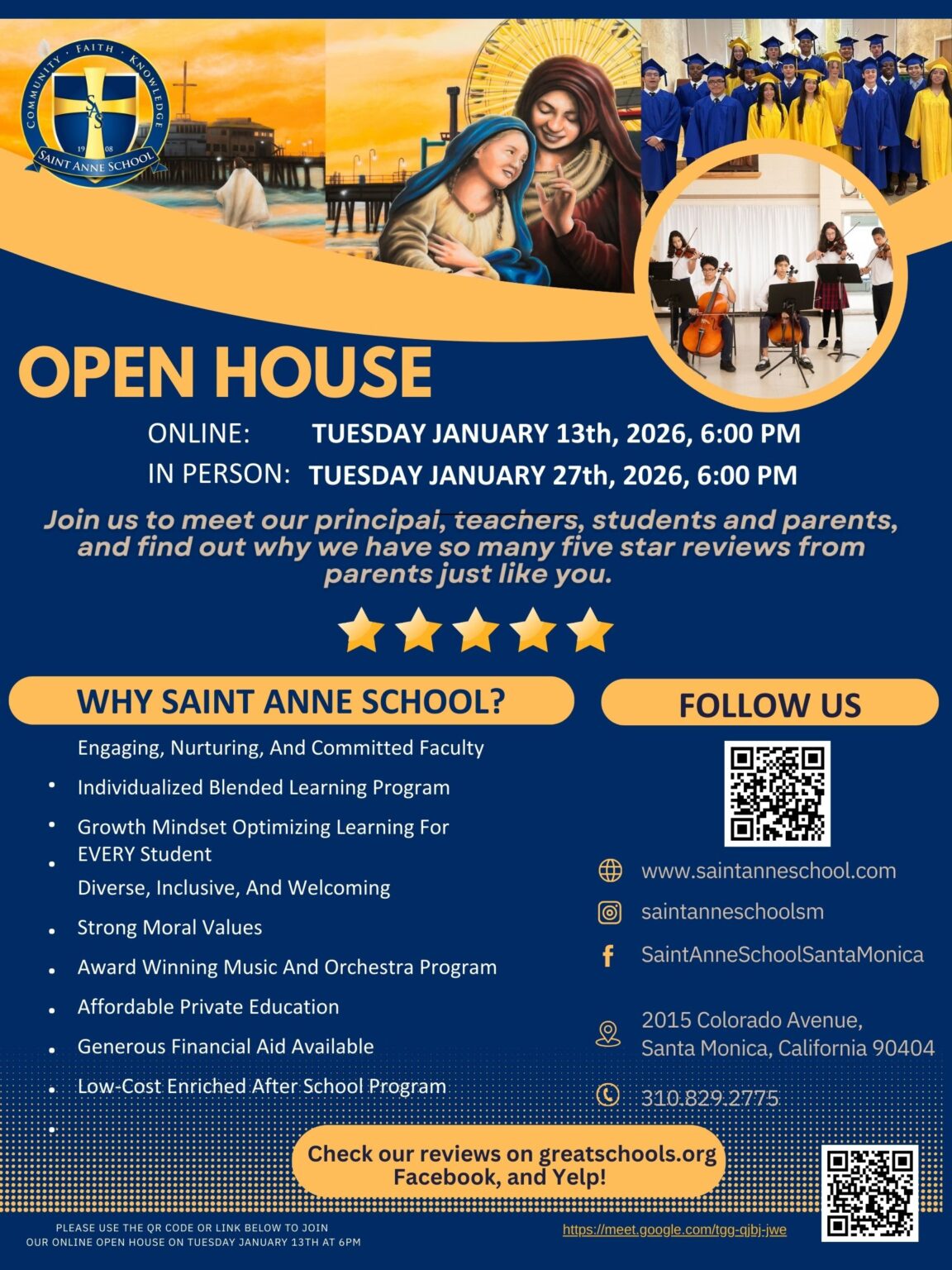 At Saint Anne School, the admissions process is tailored to make every family feel welcome and informed. Begin with a campus tour and a one-on-one consultation to learn about our educational philosophy. Our admissions team is dedicated to guiding you through each step, ensuring a smooth and engaging experience. Join us in fostering a lifelong love of learning for your child.